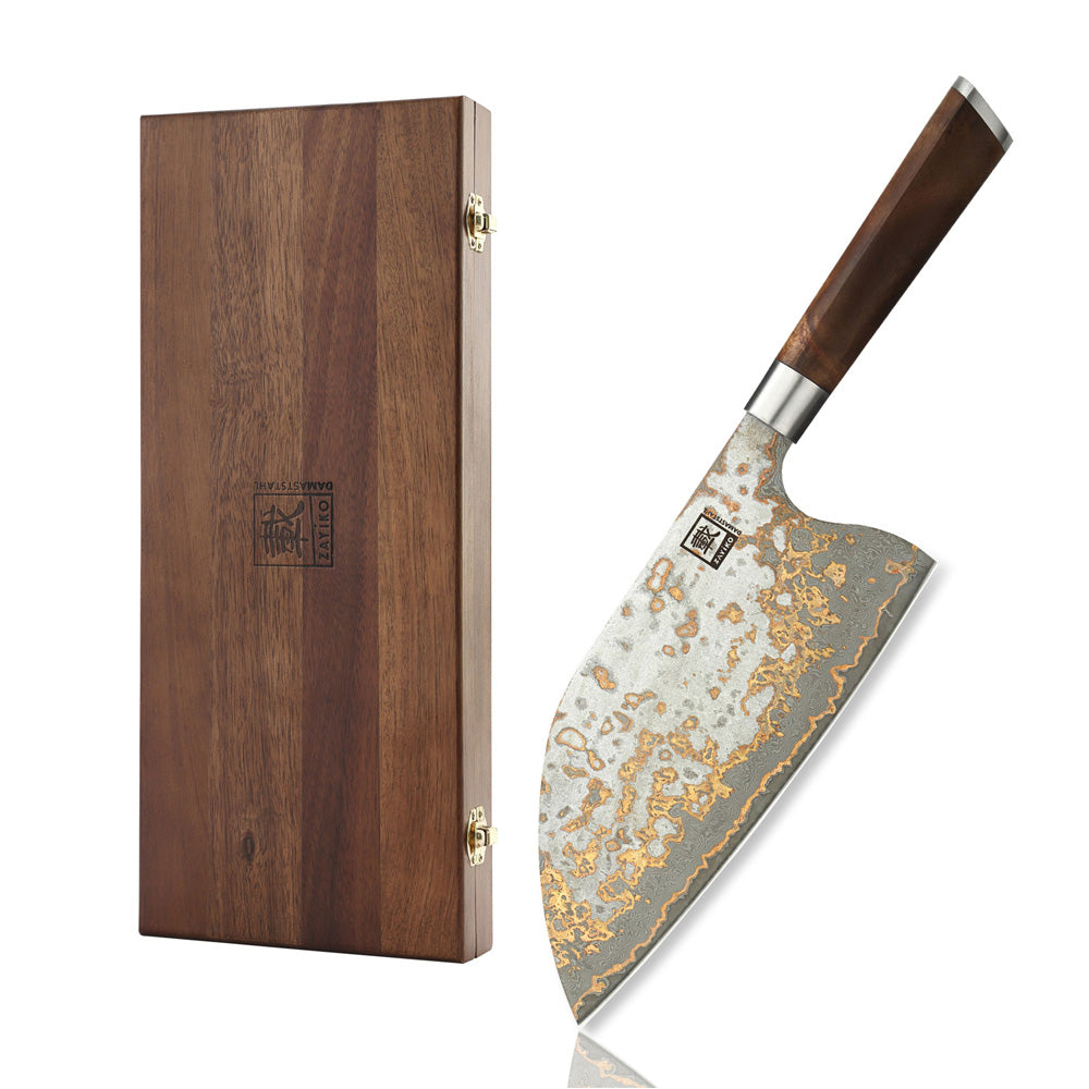 Das MysticMagma Chai Dao von Zayiko ist ein Meisterwerk aus japanischem Damaststahl – handgefertigt, scharf und wunderschön. Mit seiner breiten 20 cm Klinge, Kupfer- und Bronze-Akzenten und dem ergonomischen DualCurve-Griff aus Ahornwurzelholz ist es das ideale Messer für alle, die in der Küche Präzision, Stil und Leidenschaft vereinen.