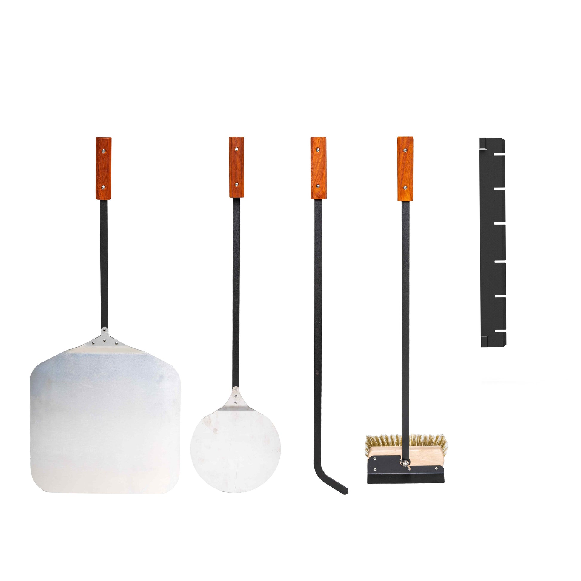 - All-in-One Set: Pizzaschaufel, Drehschaufel, Ofenbürste, Schürhaken und herausnehmbares Tablett – alles in einer platzsparenden Einheit vereint.