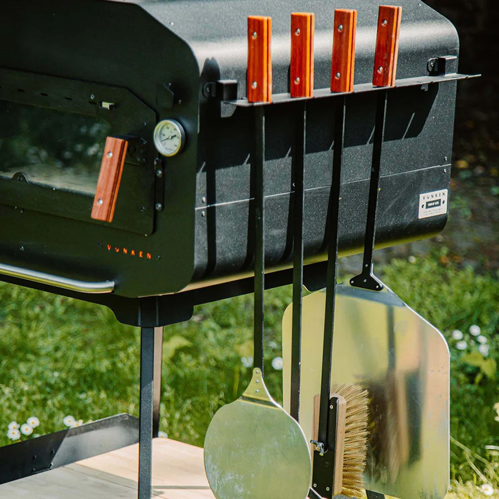 Mit dem Vonken Zubehör-Set hast du alles griffbereit, was du für knusprige Pizza und viele andere Gerichte brauchst. Alle Tools sind robust aus Edelstahl, recyceltem Hartholz und Aluminium gefertigt, hitzebeständig beschichtet und natürlich mit jedem Vonken-Ofen kompatibel.