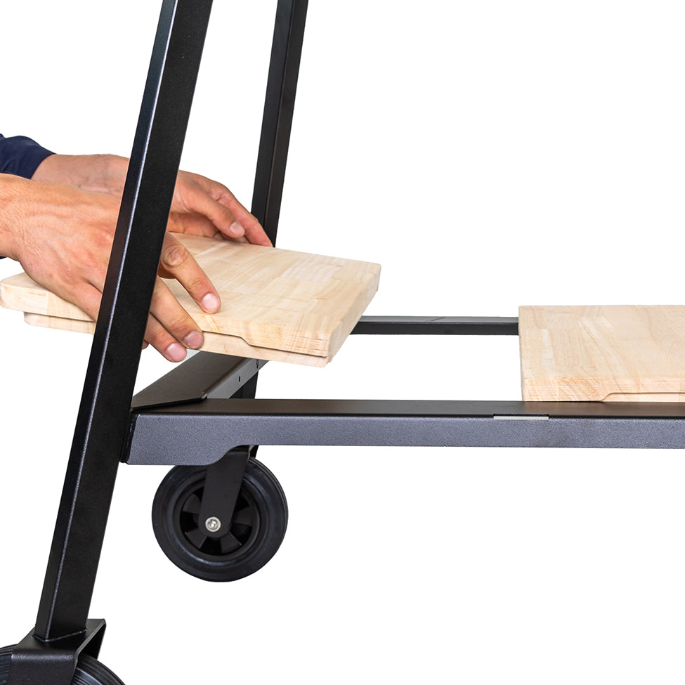 - Extras: Mit stabilen Rollen für einfache Beweglichkeit, Ablageboden für Zubehör & Holz.